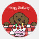 Unique and funny Labrador Retriever Cartoon created by Naomi Ochiai from Japan. Chocolate Labrador Cartoon Birthday Party design for dog lovers who love Chocolate Labrador Retriever. Very cute dog cartoon birthday sticker with a cute Chocolate Lab and a Birthday Cake on the table. You can customise text and more!