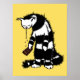 Funny chocolate poster for a cat lover with an ink illustration of a weird feline character who loves chocolate. You can tell by the striped kitty’s drool falling on the block of delicious sweet miracle which it is holding.