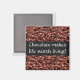 This magnet was created with the chocolate lover in mind! Design features a field of chocolate chips. There is a black banner with white text that says, "Chocolate makes life worth living!" This chocolate chips novelty magnet makes a great gift for the chocolate lover in your life. Whether the sweet tooth belongs to a friend, loved one, or yourself!