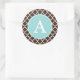 A dark, chocolate brown pattern and an aqua accent gives these monogram stickers retro style. Personalise the text to suit your needs. Use these stickers in the kitchen, for baking, school, business, office, crafts, gifts, gift bags, a wedding, baby shower, etc...The design is from original art.