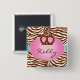 Name Tag Button for pastry chef or baker with cute chocolate pretzel and fun zebra background.