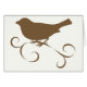 This silhouette in chocolate brown colour is of a sparrow perched upon a branch-like ribbon. A sweet and romantic depiction of a bird and nature.