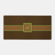Add a little swank to your style with this simple yet classic pinstripe pattern with a chocolate brown base and a bright lime green accent stripe. Customise the monogram in the circle with your initial to create a unique desk mat for your work or play space.