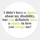 "I didn't have a choice about my disability, but you definitely have a choice in how you accept me!" You can find this design on t-shirts, mugs, hats and much more!