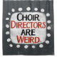 "Choir Directors Are Weird" is a cute text design in grey with black and red text, along with a white accent shape and white textured whimsical dots surrounding it.
