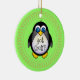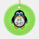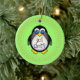 Green holiday Christmas ornament with cute music penguin and Got Choir singing quote. Gold filigree border.
