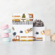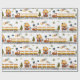 Do you have a little choo choo train fan? This custom wrapping paper is perfect! Gift wrap has a pattern of a bright, colourful steam engine with passenger cars on a railroad track. There are also buildings and trees.