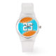 Choose your own colors! This team colors softball watch features the image of a bright blue, orange and white softball - personalize with the athlete's jersey number -- to change the colors of the softball's blue & orange sections and the stitches, click the "Edit this design" button (above) to access the Zazzle design tool, then select the softball image layer and replace the current colors with your team's colors (you can select colors from Zazzle's color palette or input a color's HEX code) - similarly, you can change the color of the jersey number - by katz_d_zynes