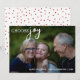 Send holiday cheer with this heartfelt card featuring your photo, greetings, name(s) and text that reads Choose Joy. The backside features a fun polka dot pattern - easily change the colour to match your photo. Photo Credit: Nathan Anderson, Unsplash