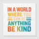 Brighten the world with kindness through this cheerful "In A World Where You Can Be Anything, Be Kind" greeting card, illustrated in vibrant, colourful lettering. This uplifting and motivational artwork promotes positivity, empathy, and compassion, making it a perfect design for spreading good vibes wherever you go. Ideal for teachers, students, mental health advocates, or anyone who believes in kindness as a superpower.