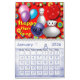 A sturdy calendar, with vivid, creative bowling characters. Perfect for someone who loves to bowl. The pages offer ample room to write down daily to-do lists. The colors were bright, vivid, and wonderful. Print was large and easy to read. This calendar is fun to look at on a daily basis.