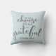 Simple throw pillow design with quote: "We Can Choose To Be Grateful No Matter What" in handwritten typography. Light Grey text on light blue grey background. Always customisable if you want to change the size of the type or the colour of the background! Just click the customise button.