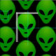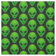 Green alien head prints on black background fabric. You can choose your own background colour
