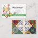 Business card perfect for a chef or caterer or restaurant featuring chopped veggies cascading down the side and fully cusomizable text and icons, the back is adorned with a beautiful Mexican Talavera tile motif. Customise this to suit your needs! Could also be great for a health food blogger, a vegetarian chef, health food consultant, home cook, dietician and more.