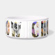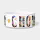 This beautiful high quality pet dish features a Cream, Blue, Red and Black chow within the letters. CHOW repeats 3 times around the bowl interspersed with gold toned hearts!! Very durable and easy to clean!!