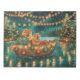 Set sail into the magic of the holiday season with this beautifully detailed illustration, showcasing a proud dog sitting in a festively decorated boat, gliding across a serene Christmas lake. The twinkling lights from nearby pine trees reflect off the water, casting a warm, festive glow that enhances the cosy ambiance. Ornaments dangle from the boat's sides, while glowing lanterns light the way, creating a scene that captures the true essence of Christmas warmth and joy. This nostalgic artwork brings a touch of holiday magic to any space, perfect for those who cherish the spirit of the season.