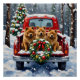 Bring dignified, lion-like charm to your holiday season with this majestic Chow Chow Christmas design! This captivating scene features three plush-coated, unique Chow Chows sitting calmly in the back of a classic red pickup truck, perfectly suited for the beautiful snowy winter forest setting. The vintage truck is adorned with a vibrant Christmas wreath, twinkling with red and gold ornaments and warm, glowing lights. Abundant snowflakes fall around the scene, truly creating a winter wonderland. With a decorated Christmas tree in the background, this design is perfect for capturing the joyful spirit of the holidays and makes an excellent Christmas gift for any Chow Chow owner, dog lover, or admirer of festive and magnificent dog art.