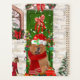 Chow Chow Dog sitting outside decorated home with Christmas wreath, Christmas tree is a perfect Christmas gift idea for dog lovers.