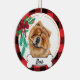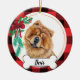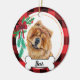 Chow Chow ornament with red buffalo background and Christmas garland and bow - Art was hand painted by me and made available as this adorable ornament! Add any text (suggested: "I ❤️ my chow" or your sweetie's name)