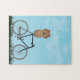 Puzzle featuring an adorable Chow Chow sitting on an old-fashioned bicycle on a blue summer day.