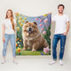 Chow Chow Dog Spring Flowers Painting Fleece Blanket