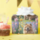 A cheerful dog sits peacefully on lush green grass, surrounded by colourful spring blooms under a soft blue sky. This digital oil painting captures a serene moment with expressive brushstrokes, warm colours, and a sense of gentle joy.