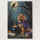 Step into a magical Halloween night with this whimsical oil painting featuring an adorable pup dressed in a mini witch cloak, seated beside a bubbling cauldron in a shadowy forest. Surrounded by glowing potions, old spellbooks, and twinkling magical sparks, the scene is filled with mystery and charm. Rich painterly textures and deep Halloween hues create a cosy, enchanted vibe perfect for spooky season lovers.
