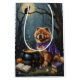 Step into a magical Halloween night with this whimsical oil painting featuring an adorable pup dressed in a mini witch cloak, seated beside a bubbling cauldron in a shadowy forest. Surrounded by glowing potions, old spellbooks, and twinkling magical sparks, the scene is filled with mystery and charm. Rich painterly textures and deep Halloween hues create a cosy, enchanted vibe perfect for spooky season lovers.