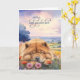 Send this sweet greeting card to the person in your life who shares their life with an adorable Chow Chow dog by choosing this cute missing you message when they are away, and a sweet pup surrounded by botanical blooms and pastel vista.