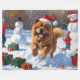 A fluffy Chow Chow runs joyfully through the snowy winter scene, wearing a festive red Christmas hat. This charming design highlights the breed’s thick coat, lion-like mane, and dignified personality while capturing the warmth and spirit of the holiday season. A heartwarming winter moment full of festive charm.