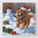 Chow Chow Running in Snow with Christmas Hat Square Wall Clock