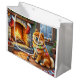 Chow Chow Sitting Fireplace with Christmas Lights Large Gift Bag