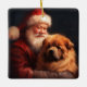 Chow Chow With Santa Claus Festive Christmas Ceramic Ornament