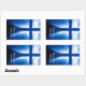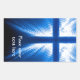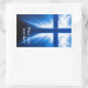 Christ crucifix silhouette on blue background with light rays from the back. Christianity, religion, easter symbol of resurrection.