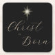 Christ is Born Religious Modern Black Christmas Square Paper Coaster