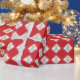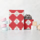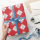 For Christians, Christmas is a time to celebrate the birth of the Saviour. The text on this wrapping paper says, "JOY Christ is born! LOVE God Gave his Son to save us! PEACE We have the gift of eternal life! Merry Christmas" It is a beautiful design, displaying the reason for the joy we have at this season. This design is festive with a red background, and some accents of green and a golden yellow. It's bright, happy, and a beautiful way to share the joy of the season. The text is in the shape of a Christmas tree, adding to the festive look of the design.