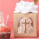 The size is perfect and the design has a softness with the beautiful flowers around the edges. The black lettering on the white background is sharp. It stands out beautifully. I love the Mixture of font styles as it catches the eye.