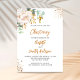 For the christening of 2 two children. A white background decorated with eucalyptus greenery, a white rose, and golden leaves and faux gold glitter drops. Personalise and the childrens names and ceremony details. Black and golden coloured letters. Gender neutral.