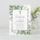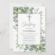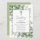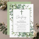 Invite loved ones to celebrate a special Christening with this elegant gender-neutral invitation, featuring a green cross surrounded by lush greenery. Perfect for boys or girls, this design embraces nature's beauty while maintaining a timeless, spiritual feel. The soft green tones and minimalist style make this invitation ideal for any Christening celebration. Personalise with all the important details to create a thoughtful and serene keepsake for your child’s religious milestone.