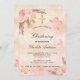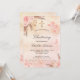 A rose gold, blush pink rustic faux metallic looking background. Decorated with rose gold and pink florals, roses, pampas grass, butterflies and a golden cross. Personalise and add a name and the details.