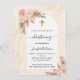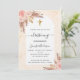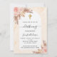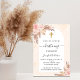 An arch frame and rose gold marble print as background. Decorated with rose gold and pink florals, roses and pampas grass. Personalise and add a name and details.