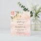 A rose gold and blush pink gradient background decorated with eucalyptus greenery, a rose gold and blush pink rose, and golden leaves and faux silver glitter drops. Personalise and the childs name and ceremony details.