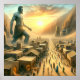 A dramatic digital art creation poster print of a Giant walking in the land of Caanan in the Christian Bible story. Perfect for a unique and special gift for someone or for anyone who likes religious art.