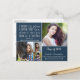 Christian Bible Verse Photo Collage Graduation Postcard: This design features our rustic blue background and Jeremiah 29:11 with space for 4 photos! The back is easy to customise with your information or other details. To personalise further, please click the "customise further" link and use the design tool to modify the design. If you need assistance or matching items, please contact us.