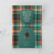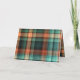 Plaid Christmas greeting card with scripture. Christian Christmas greetings with three text templates. Add your preferred greeting to the front of this horizontal folded card. Inside on top is scripture, "For to us a child is born, to us a son is given...And he will be called Wonderful Counsellor, Mighty God, Everlasting Father, Prince of Peace." Isaiah 9:6. A plaid Christmas tree over a dark green arch shape, is on the bottom with a place for a signature.