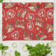 Christian Christmas Watercolor Nativity Red Tea Towel