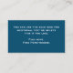 Customise this card with your Church's contact information or Pastor's information. You can personalise all the white text on this minimalistic modern ocean blue card. You can add your church's or organisation name in clear simple white text. You can add your name, address, email and website in clear script. The back side is solid minimalistic blue with white script where you can add a Bible Verse, word or hope, Salvation message or other information for your church meeting or special event.