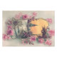 This spring send someone an Easter greeting! This vintage print depicts a snowy landscape with a church. Pink roses border the picture.