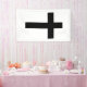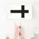 This design features the Christian cross, which is seen as a representation of the instrument of the crucifixion of Jesus. The cross is perhaps the best known symbol of Christianity. It is related to the crucifix (a cross that includes a corpus, usually a three-dimensional representation of Jesus' body). The basic forms of the cross are the Latin cross with unequal arms (✝) and the Greek cross (✚) with equal arms, as well as numerous other variants.