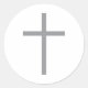 Silver cross on a round white sticker. Perfect for any Church, Sunday School or Christian occasion!